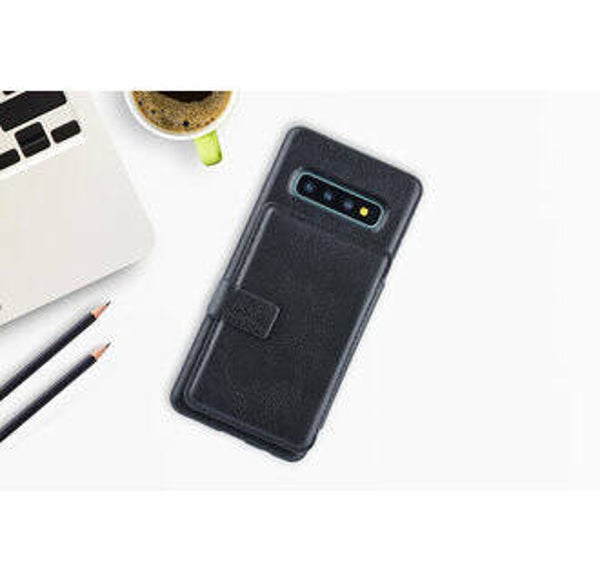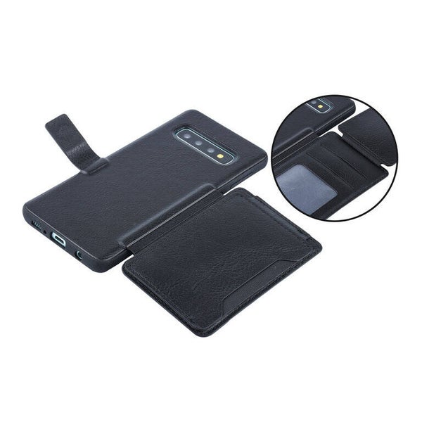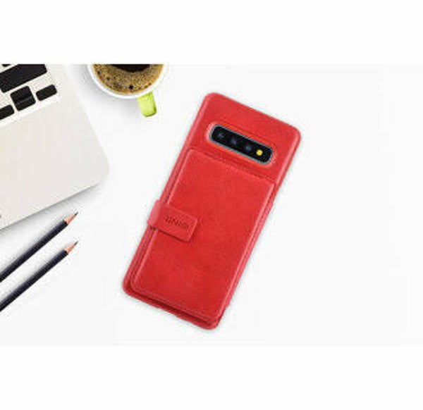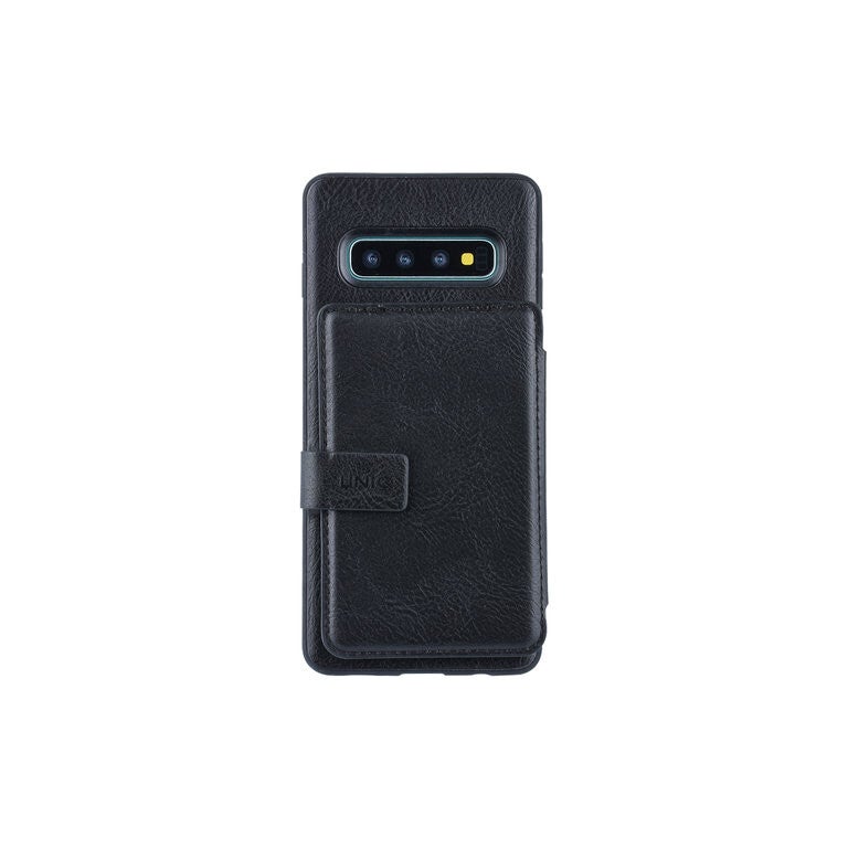 UNIQ Accessory Galaxy S10 Kunstleer Backcover hoesje met clip pasjeshouder - Zwart