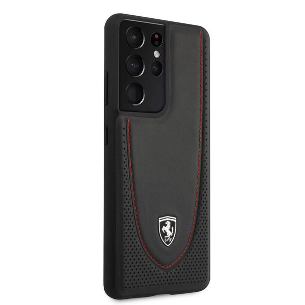 Ferrari Samsung Galaxy S21 Ultra Zwart Backcover hoesje - Off Track Stitch Line