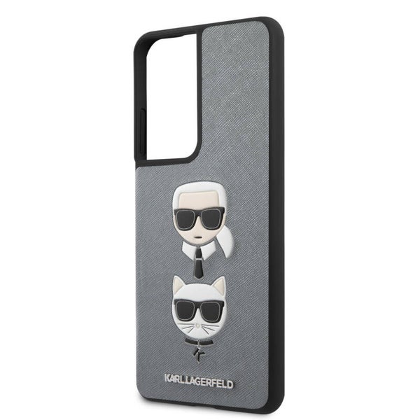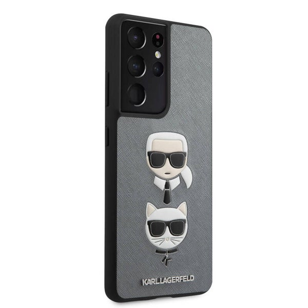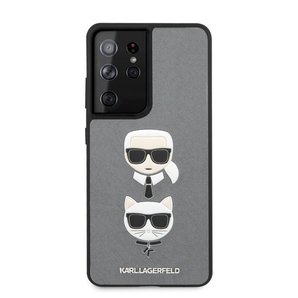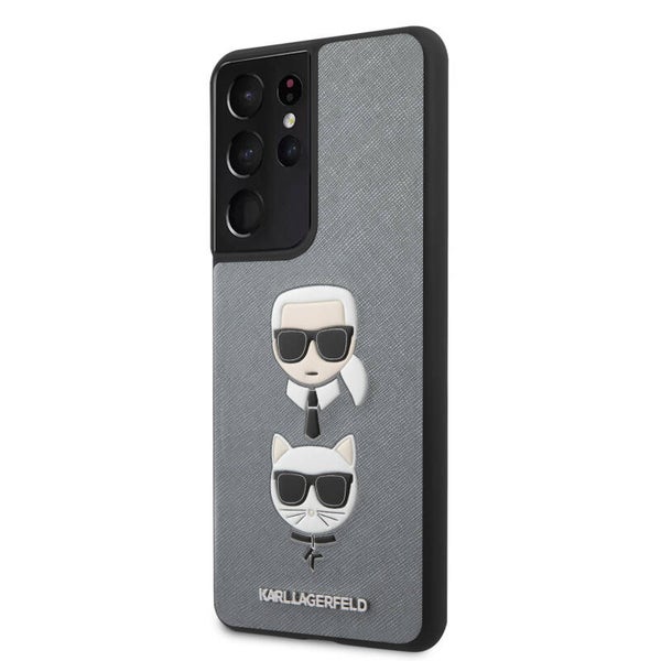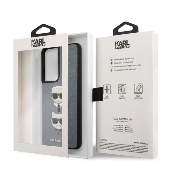 Karl Lagerfeld Samsung Galaxy S21 Ultra Zilver Backcover hoesje - Saffiano Ikonik Karl&Choupette Head