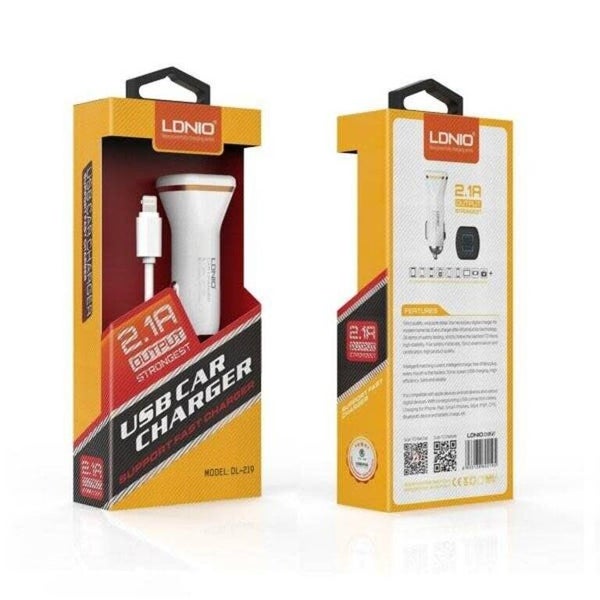 LDNIO DL-219 Car charger 2x USB port 2.1A met Lightning USB Kabel - Wit
