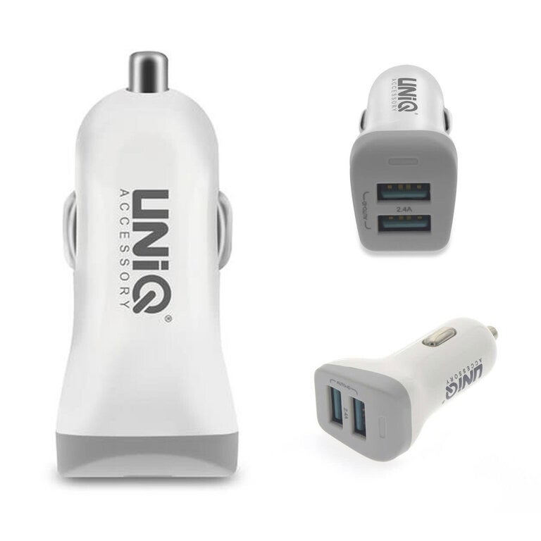 Autolader Dual USB port 2.4A - UNIQ Accessory Snellader - Wit