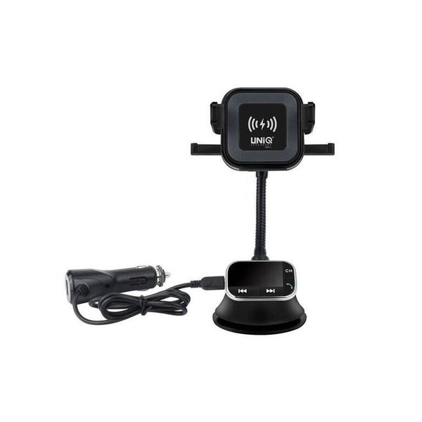 UNIQ Accessory Bluetooth FM Transmitter, Autohouder + Draadloze Oplader - Zwart