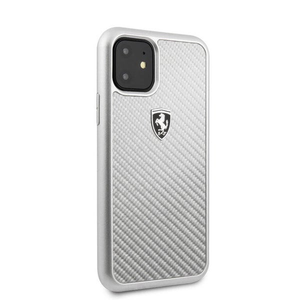 Apple iPhone 11 Zilver Ferrari Backcover hoesje FEHCAHCN61SI - Carbon Fiber