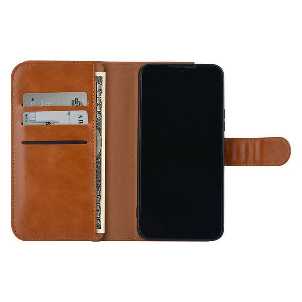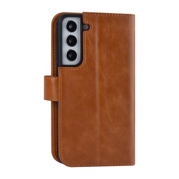UNIQ Accessory Samsung Galaxy S22 Book Case hoesje - Pasjeshouder voor 9 pasjes - Magneetsluiting - Bruin